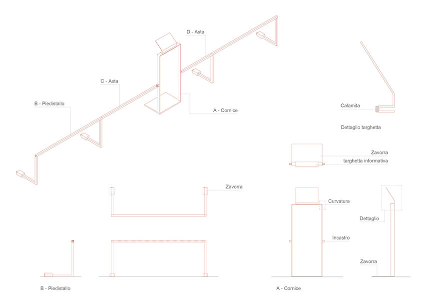 Anche i portaestintori sono stati ridisegnati per integrarsi meglio nel contesto storico-artistico. Il loro design, coerente con quello dei pannelli mitigatori, assicura che siano funzionali e visibili in caso di emergenza, pur rimanendo in armonia estetica con le sale.